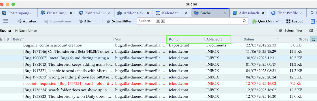 Ich habe folgendes Problem: Ich benutze seit Jahren Mozilla Thunderbird und bin eigentlich zufrieden. Aber seit Montag spinnt das Programm zum einen, da wird die ganze Zeit nach einem Passwort für Cadav.gmx gefragt, das Fenster poppt auf und nervt tierisch. Zum zweiten es verschwinden Mail, ich kann praktisch zugucken, das Programm läd die Mail runter und wenn ich im Posteingang oder in den anderen Ordnern nachschaue, finde ich die Mail nicht. Ich bin total ratlos. Ich habe 3 Mailadressen über Thunderbird wo ich Mail abrufe, T-online, Vodafone und GMX. Die Probleme treten bei T-online,de auf und massiv GMX. Ich weiss nicht wo ich diese verschwindenden Mail noch im Programm suchen soll, zumal diese Mail in den entsprechenden Web-Browsern angezeigt werden bzw. Outlook diese Mails ohne Probleme anzeigt, nur beim Thunderbird leider nicht. Ich bin echt ratlos! Ich habe Win 11, Kontoart IMAP, die Postfachanbieter die Probleme machen sind T-online und gmx. Die Antivirensoftware ist: Panda Antivirus. Ich bin hingegangen und habe sogar Thunderbird deinstalliert und die neueste Version wieder aufgespielt und dann die Email-Konten neu eingerichtet, aber das Problem bleibt bestehen und ich finde es gruselig. Wie bekomme ich meine Mail wieder komplett in das Programm?