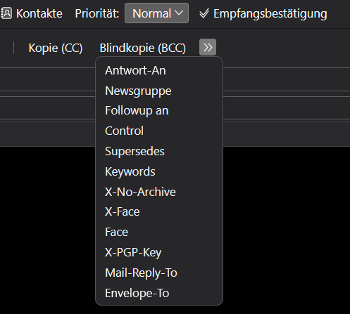 Irgendwie ein wenig merkwürdig ist, Envelope-To als zusätzlichen manuellen Compose-Header einzutragen, denn hier wird er dann auch merkwürdigerweise als Header von empfangenen Mails angezeigt.