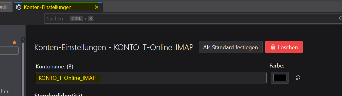 Öffne ich bei beiden Konten die "Einstellungen" dann erhalte ich beim zweiten Aufruf (Konto eins Einstellungen geöffnet)