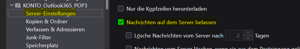Setze für das POP3-Konto unbedingt folgende Option: