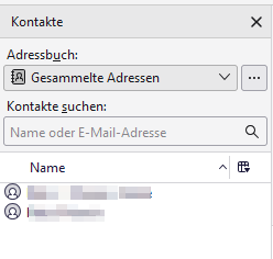 Wenn ich dagegen im Adressbuch des Hauptprogramm-Fensters schaue, dann sind dort die "Gesammelte Adressen" noch alle vorhanden, siehe Bild: