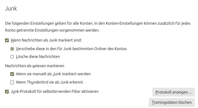 Der Spamfilter wirkt auf dem Server. Der interne Junkfilter in TB ist deaktiviert.