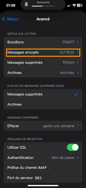 Dann wollte ich in "gesendet" gehen, war vorher im Posteingang.