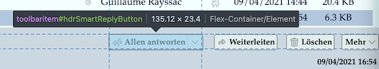 Ich meine, dass es in früheren Versionen der kleinen Symbolleiste im Message Header die Möglichkeit gab, über eine "Anpassen" Funktion eine Auswahl der anzuzeigenden Buttons vorzunehmen. Der Selektor des hier gezeigten Buttons heißt #hdrSmartReplyButton