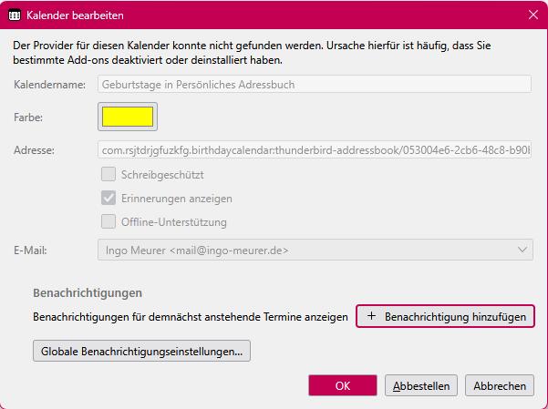 ich würde gerne den Yahoo-Kalender zusätzlich in Thunderbird nutzen.