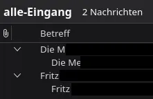 In meinem virtuellen Ordner alle-Eingang werden die mails, die ich schon einmal gelesen hatte, doppelt als Gruppe angezeigt