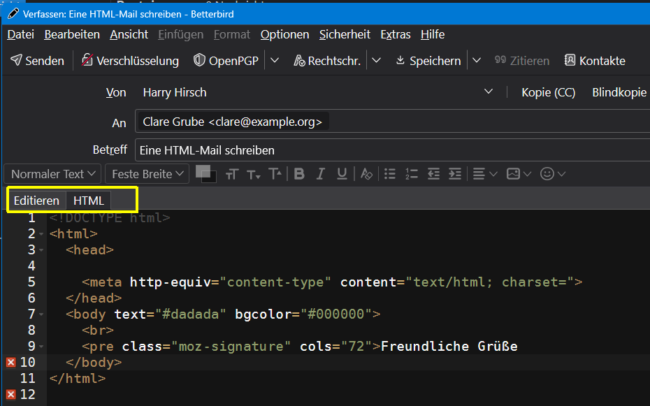 Html-Mails versenden mit Thunderbird 143.0.1