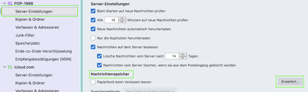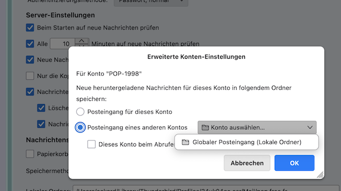 Kontenart: POP, Postfachanbieter t-online, keine Aktualisierung