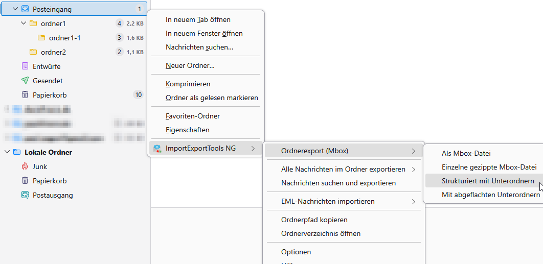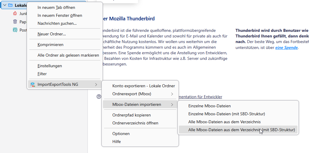 2. Mails mit ImportExportTools NG aus dem alten Profil exportieren und in das neue importieren.