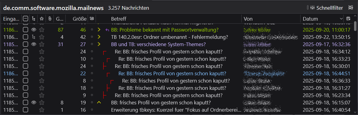 ich wollte zu Betterbird (140.3.1esr-bb12 (64-Bit)) wechseln, weil Reverse Threading für mich sehr wichtig ist. Allerdings funktioniert Reverse Threading nicht - egal ob bei der Download-Version oder der Flatpak-Version.