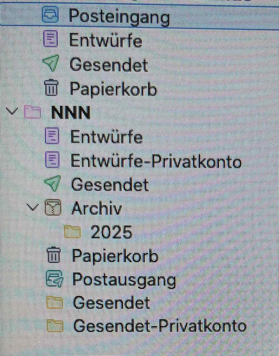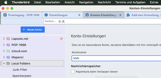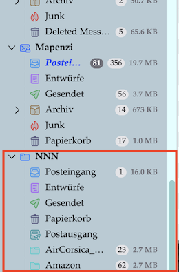 Außerdem hat das Mailprogramm ohne mein Zutun ein weiteres Konto NNN mit unsinnigen Kategorien gebildet, was mich nicht wieter stört, da ich es nicht benutze.
