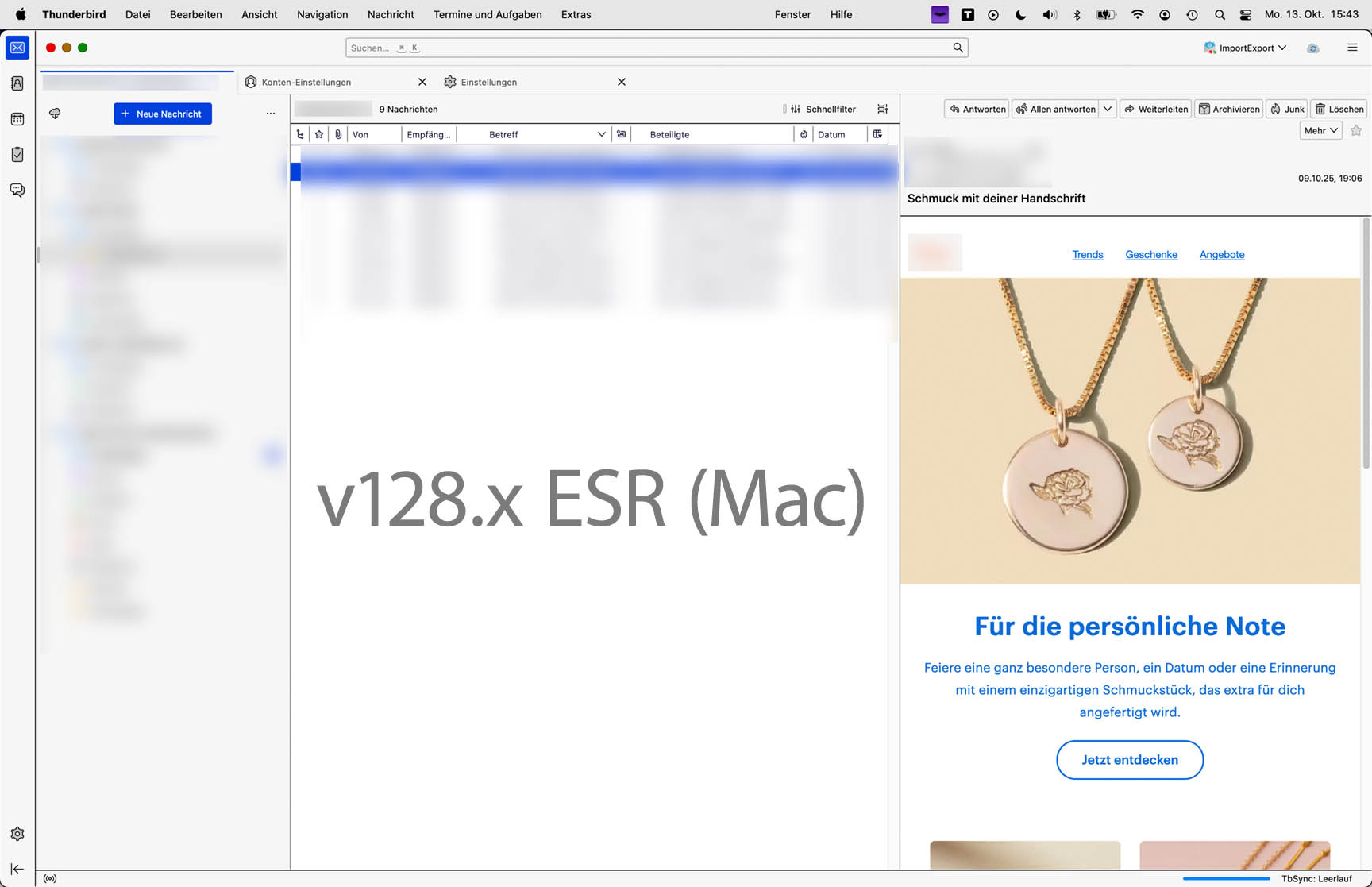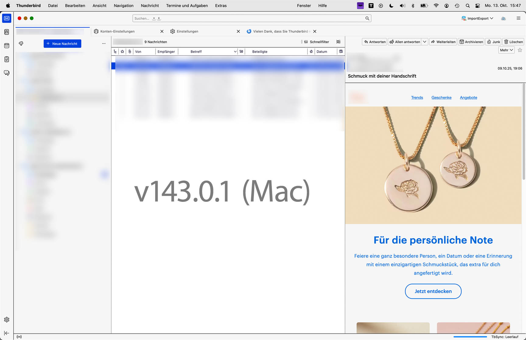 ich bin Thunderbird-Neuling (Mac-Version und Umstieg von Outlook Mac) und habe ein Problem mit dem ich leider alleine nicht weiterkomme und euch gerne um Hilfe bitten würde.