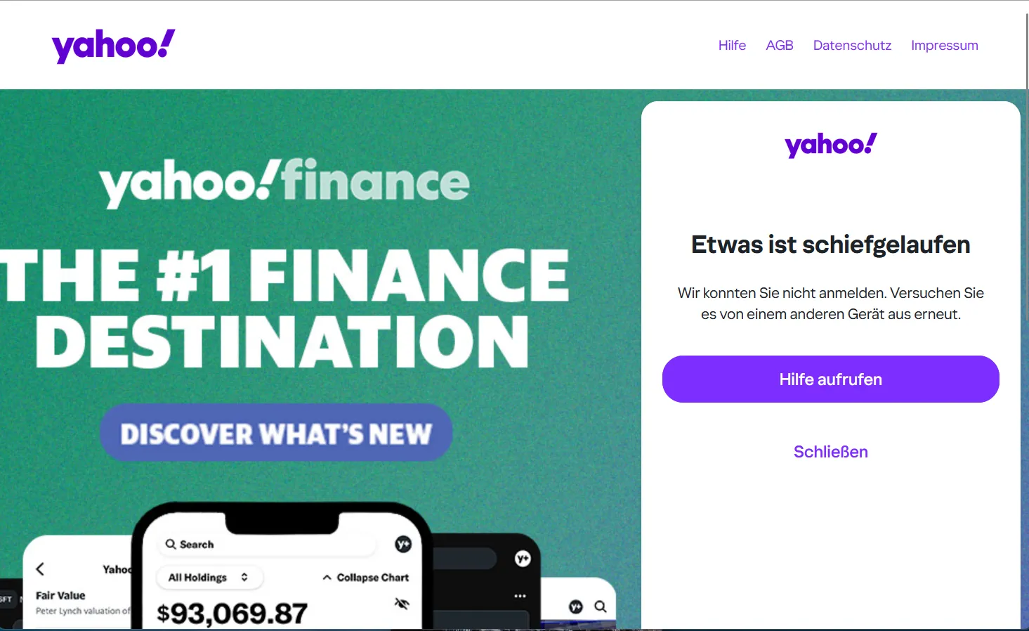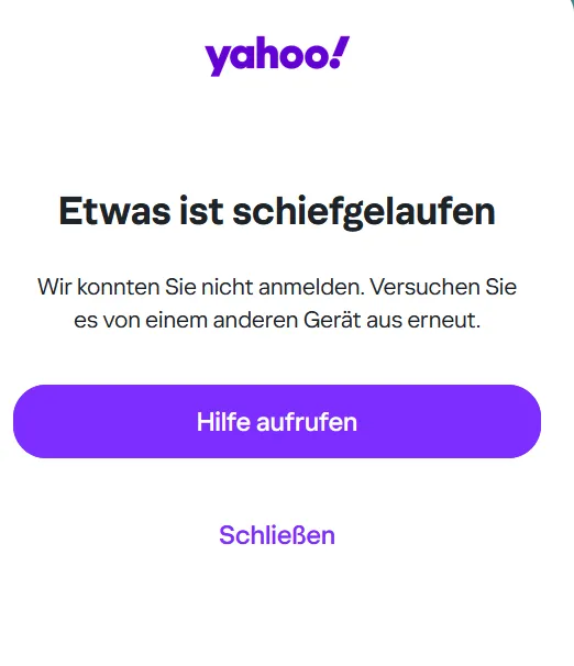 Obwohl ich KEIN Kunde bei "yahoo" bin, könnte ich mich ohne von dir gezeigte Fehlermeldung sofort anmelden, wenn ich einen Account bei diesem Anbieter hätte.