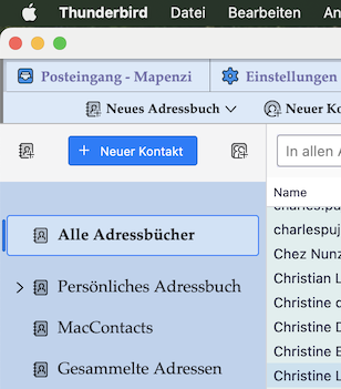 Zusätzlich habe ich ein einziges weiteres Adressbuch in TB eingerichtet: das Adressbuch, welches ich in meinem Betriebssystem global verwende. Es wird automatisch synchronisiert.