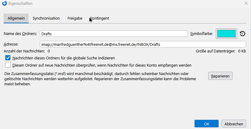 Der Inhalt dieser Ordner jedoch ist der selbe geblieben. Und die Veränderung ist auch nur für das Freenet-Konto passiert. Alle anderen Konten/Ordner sind davon nicht betroffen.