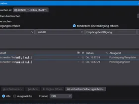 Ein schönes Beispiel. Ich suche inkl. Unterordner nach Mails. Diese werden im Posteingang gefunden (von dem meine Suche ausging). Nun verschiebe ich sie in zwei verschiedene Unterordner und anstatt sich nur der Speicherordner ändert verschwinden diese aus den Suchergebnissen.
