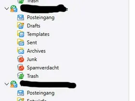 Die nativen Namen der Systemordner sind bei allen Providern in der Regel englisch (also INBOX, Drafts, Sent, Trash usw.). Normalerwesie legt Thunderbird eine (deutsche) Übersetzung darüber, so dass diese Ordner als Posteingang, Entwürfe, Gesendet, Papierkorb usw. angezeigt werden. Das funktioniert gerade nicht, soll aber schon mit dem nächsten Thunderbird-Update behoben werden. Also bitte einfach noch ein bisschen damit leben und gar nichts machen.