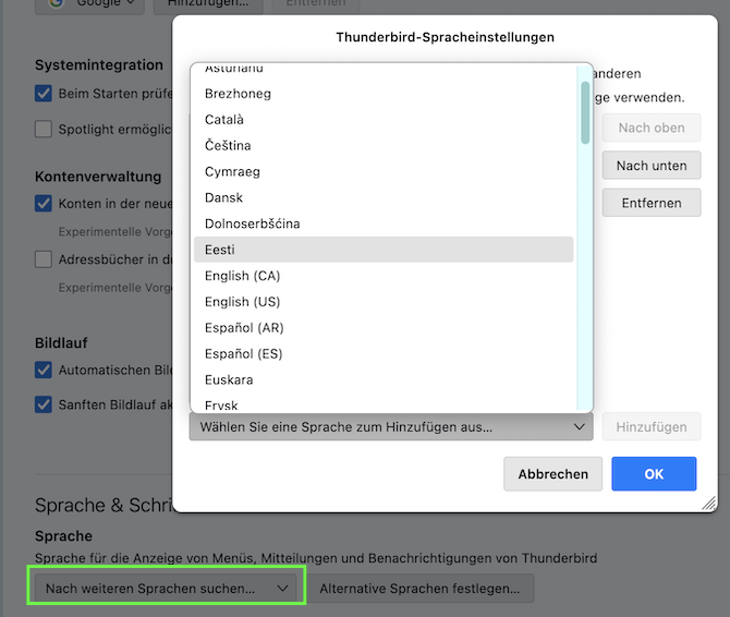 und die Sprache Deutsch in der Autokorrektur neu einbinden