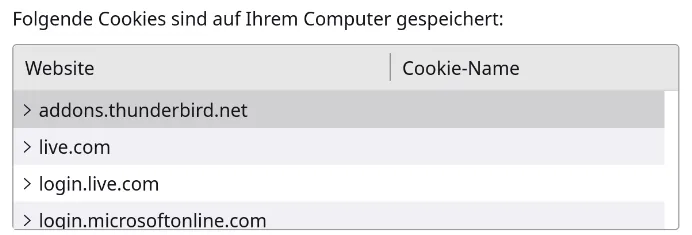 ich erinnere mich, dass ich bis vor einiger Zeit in den Datenschutzeinstellungen einstellen konnte, wie TB mit gespeicherten Cookies verfährt. an dieser Stelle gab es Optionen wie Cookies immer behalten und Cookies beim Beenden von Thunderbird löschen.