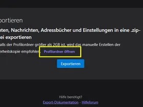 Über Werkzeuge - Exportieren konnte ich aber das Profil speichern (Zip, 1,1 GB).