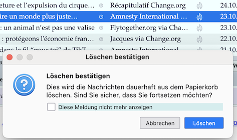 Moin in die Runde - Mails können aus dem Posteingang sofort mit Shift+Enter gelöscht werden. Die zugehörige Warnung hab ich irgendwann abgestellt.