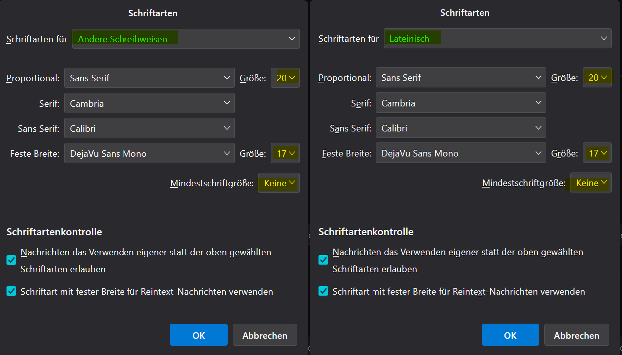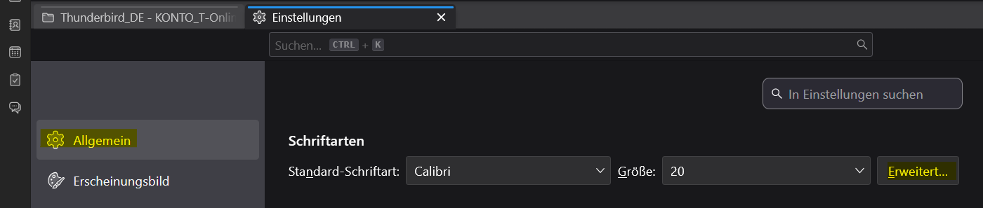 Hallo zusammen, die Schriftgröße der eingehenden E-Mails (Nachricht) ist sehr klein.