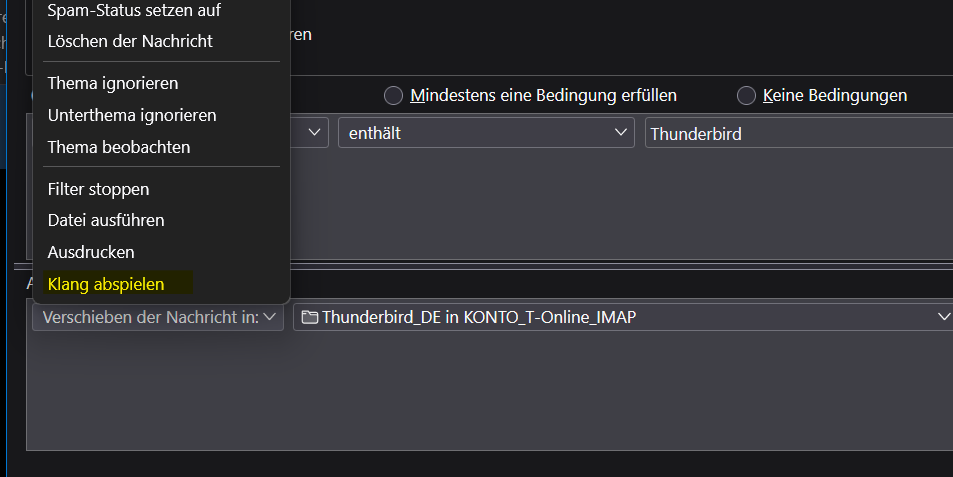 ich habe gerade festgestellt, dass es unter "Filter" nicht (mehr) die Option gibt, einen bestimmten Sound abzuspielen, wenn man eine Email empfängt, welche die Filterbedingungen erfüllt. Ist diese Option irgendwo anders hin gewandert oder wurde sie - warum auch immer - ersatzlos entfernt? Gibt es irgendeine Möglichkeit dies doch zu ermöglichen?