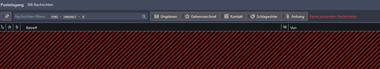 Schnellfilterleiste: Keine Nachrichten sichtbar trotz leerem Filter