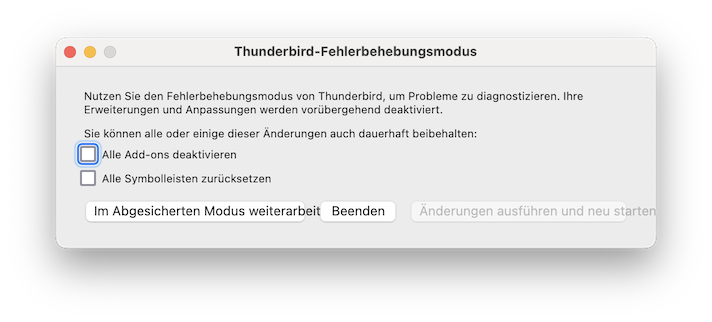 Starte TB nochmals im Fehlerbehebungsmodus.