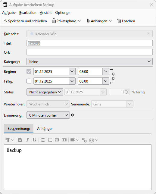 Die Aufgabe "Backup" wird nicht angezeigt.
