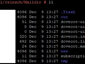 Sobald der Email-Account im Thunderbird angelegt ist, entsteht im mail-Verzeichnis auf dem Linux-Server das entsprechende Benutzerverzeichnis.