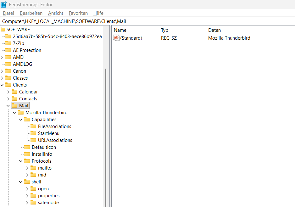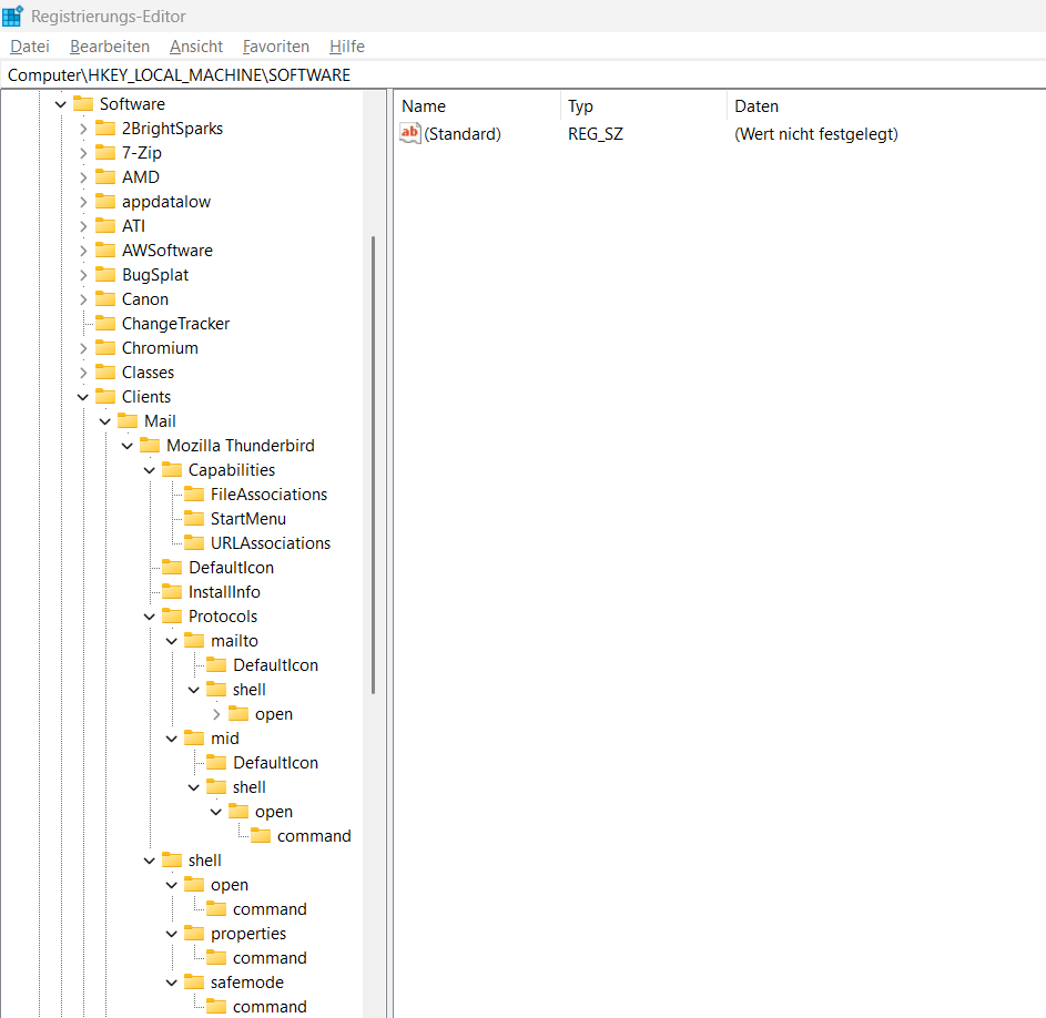 1) Thunderbird als Standard-App registriert: .emp, .wdseml, MAILTO, MID