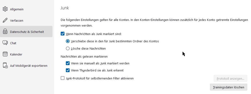 Im Fall eines IMAP-Postfaches lernt bei diesen Aktionen nicht nur der Junkfilter von Thunderbird, sondern auch der Spamfilter von freenet.