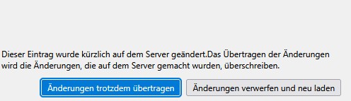 Egal, ob ich "Änderung trotzdem übertragen" oder "Änderung verwerfen und neu laden" wähle, es tut sich nichts.