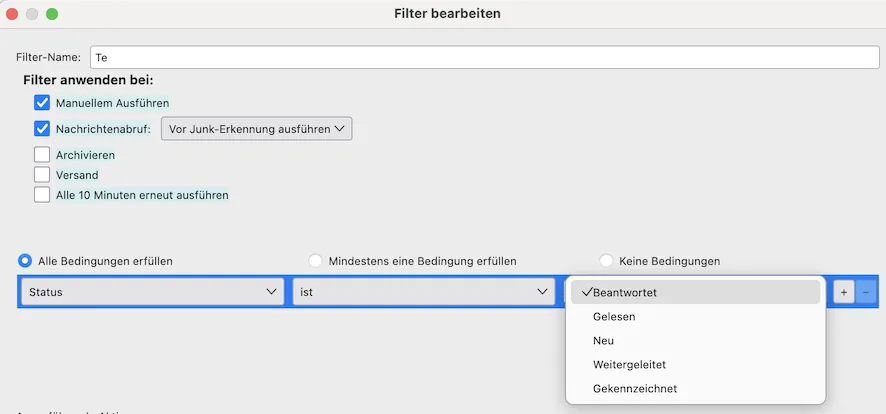 wenn ich Filterregeln erstellen will sind die Dropdown Menüs bei Status und Priorität leer. Ich hatte erst Filtaquilla im Verdacht, konnte das aber bei Github mit einem sehr engagierten User ausschließen. Wo kann ich bei TB nach Fehlern suchen, alternativ, kann ich TB neu installieren ohne die Mails zu verlieren?