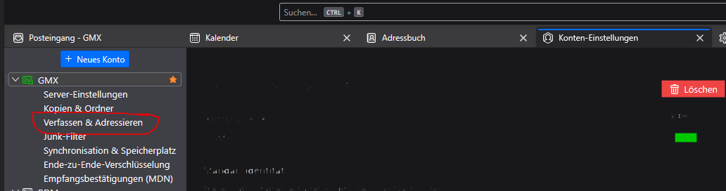 Menü > Konten-Einstellungen > [Ihr Konto] > Verfassen & Adressieren