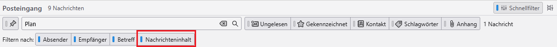ich arbeite wirklich sehr viel mit der Schnellfilterleiste. Seit wenigen Tagen funktioniert sie plötzlich nicht mehr: Sie zeigt nur die allerneueste Mail an, oder manchmal auch keine, manchmal viele verschiedene, die gar nicht alle dem Filterkriterium entsprechen. Also z.B. ich klicke nur Absender an, bekomme aber trotzdem viele Mails, die an diese Person gerichtet waren. Am wichtigsten ist für mich, dass ich mehrere Monate zurück suchen kann, und das funktioniert nicht mehr.