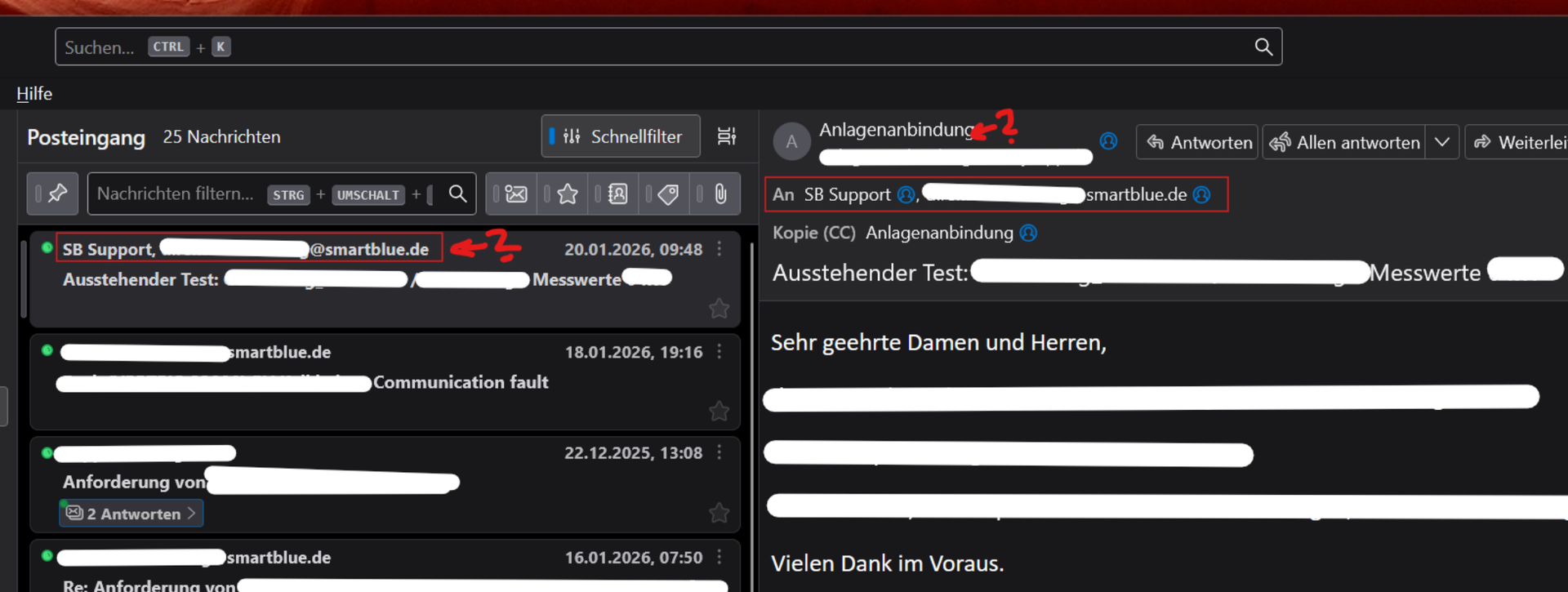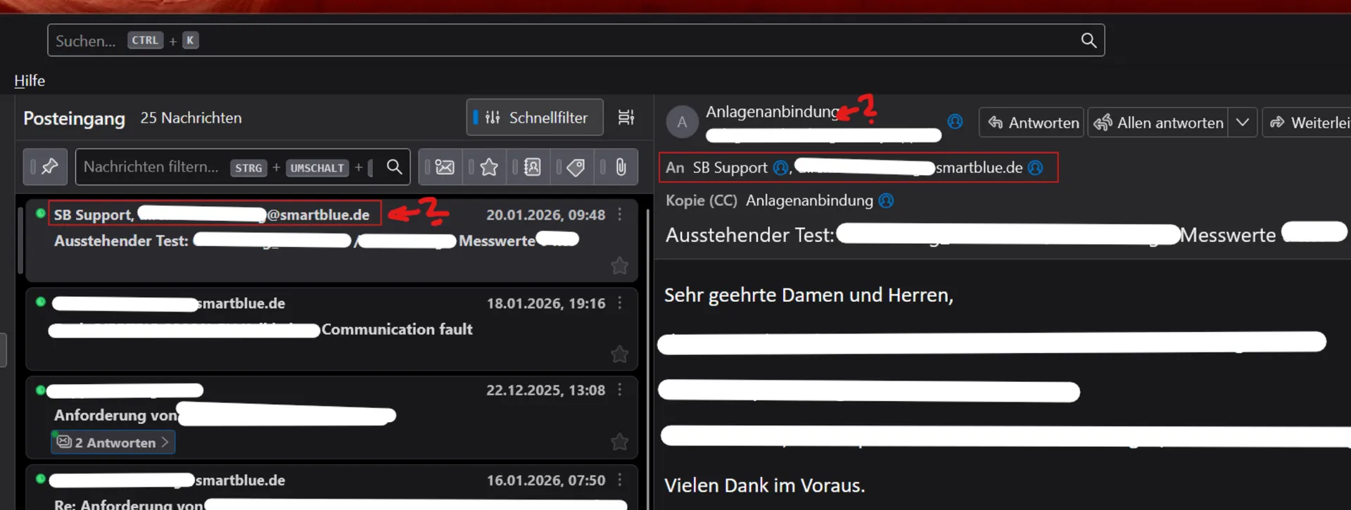 ich habe das Problem dass in meinem Posteingang, von einer meiner Emails, in der Vorschau immer der Empfänger gezeigt wird anstatt der Absender.