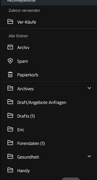 In der Yahoo App befinden sich einige andere Ordner welche ich dort auch öffnen kann.