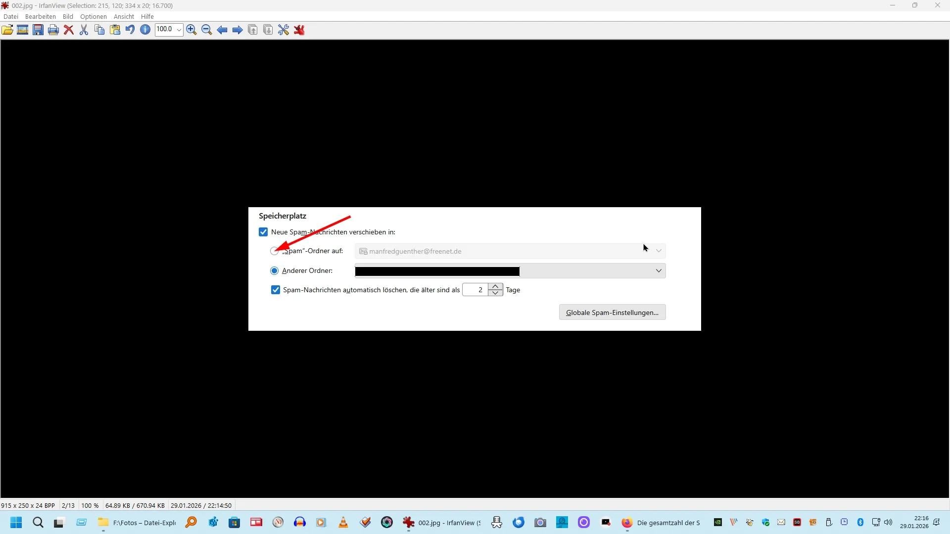 Dabei wurde in der Ordnerliste links automatisch ein Ordner Spam erstellt.