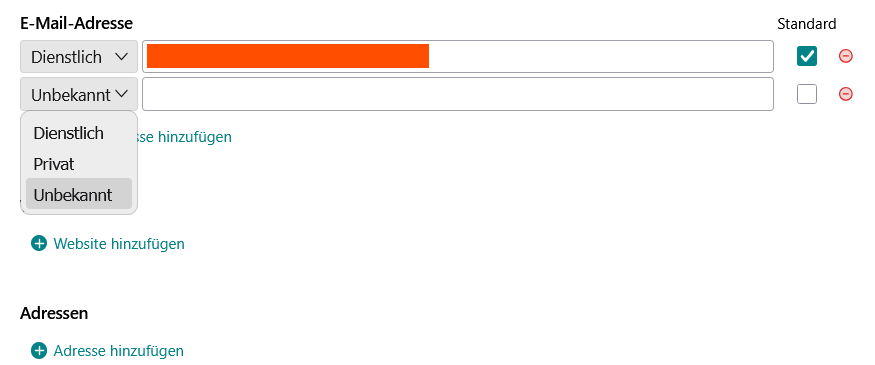 kann man eigentlich noch mehr Felder hinzufügen in dem Dropdown Menü als Dienstlich, Privat, Unbekannt ?