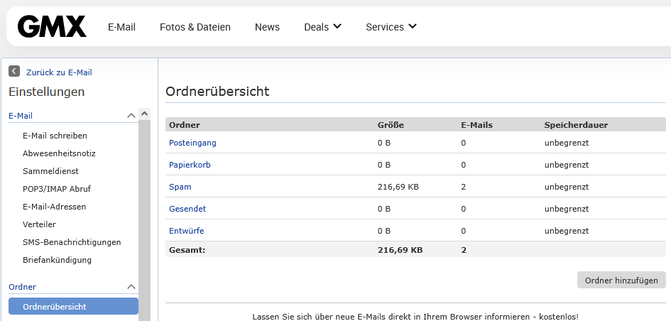 Bitte stell doch mal einen anonymisierten Screenshot wie in #9 hier ein. GMX.de -> Einstellungen -> Ordnerübersicht: