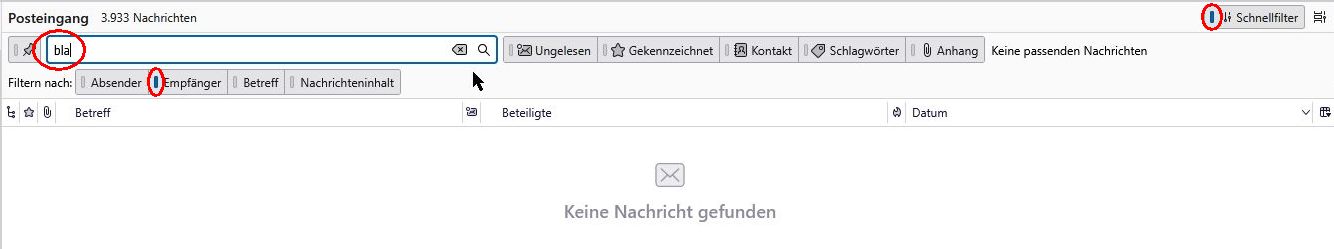 In meinem Screenshot siehst Du rechts oben den Button "Schnellfilter" (rot eingeringelt). Wenn der Streifen links daneben blau ist, dann ist der Schnellfilter eingeschaltet. Ist der Streifen ausgegraut, dann ist der Schnelllfilter ausgeschaltet. Du solltest den Schnellfilter ausschalten, falls er eingeschaltet ist.