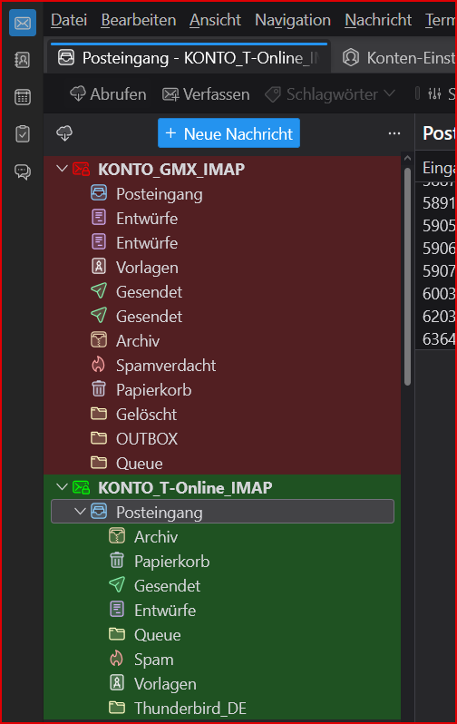 und meine Gmail adressen mit Roter Untergrundfarbe und schwarzer schrift bei Betterbird gehts