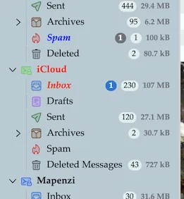 Ich hab mir dann eine Mail von der Fritzbox schicken lassen, welcher in einen Unterordner gefiltert wurde. Jetzt war nur war der Schriftzug "Lokale Ordner" rot, der Ordner wohin die Mail gefiltert blieb jedoch schwarz bold.