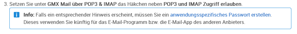 Dort habe ich für mailbox://pop.gmx.net (mailbox://pop.gmx.net) mein altes Passwort gegen das Anwendungsspezifisches Passwort ausgetauscht. Es geht aber immer noch kein Mail Abruf. Was mache ich falsch?