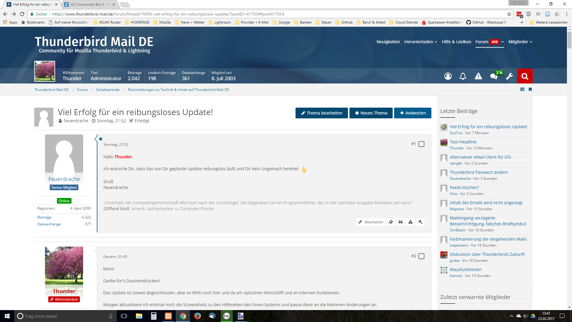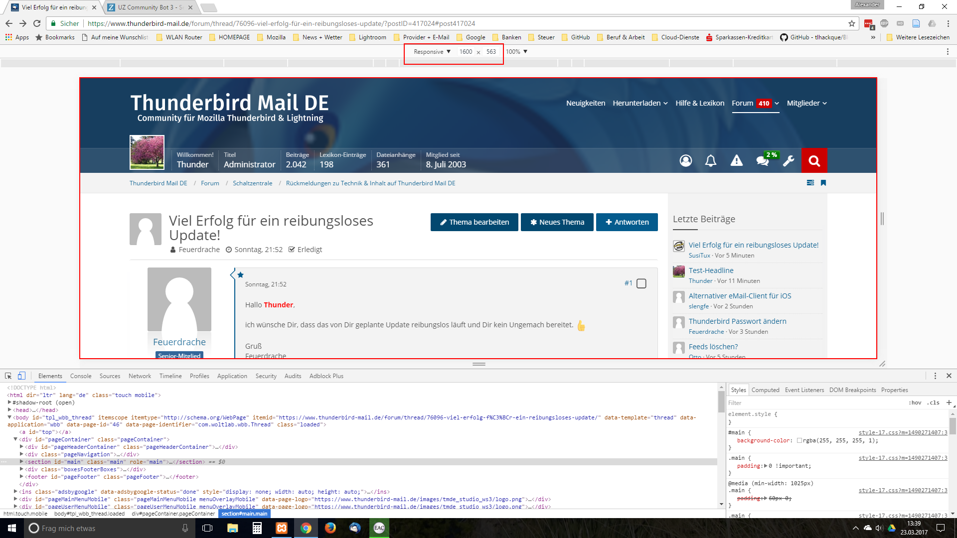 Mein Add-on "[lexicon='Abrufen/Senden-Schaltfläche',''][/lexicon]" bzw. "Get/Send-Button" versagt in der bisherigen Version (5.0.2) seinen Dienst in Thunderbird 52. Deshalb habe ich gerade bei AMO die neue korrigierte Version 5.0.3 des Add-ons hochgeladen. Es wird vermutlich noch etwas dauern, bis die neue Version für den Download von AMO freigegeben wird.