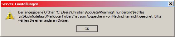 Zum einen verstehe ich nicht, was mir diese Fehlermeldung sagen soll (ich kann mich nicht erinnern, dieses Verzeichnis jemals aktiv angegeben zu haben).