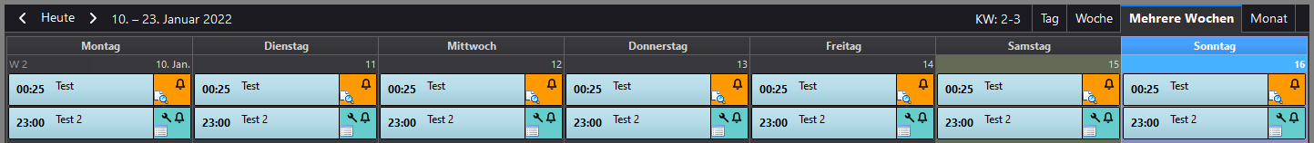 Alles anzeigen.calendar-month-day-box-list-item { margin: 1px !important; } .calendar-color-box { border: solid 1px #000 !important; } .calendar-category-box { min-width: 20px !important; min-height: 26px !important; border-left: solid 1px #000 !important; padding-top: 4px !important; padding-bottom: 4px !important; padding-left: 20px !important; margin: 0 0 0 -10px !important; } /* Für eine Kategorie. */ /* Der Pfad muss noch angepasst werden, es muss aber die gleiche Syntax verwendet werden. */ .calendar-category-box[style="background-color: var(--category-verschiedenes-color);"] { background-image: url("file:///H:/Profile/Firefox/Fx57-H-Default/chrome/icons/Bild50.gif") !important; background-position: bottom left !important; background-repeat: no-repeat !important; } /* 2te Kategorie zum Testen. */ .calendar-category-box[style="background-color: var(--category-gesch-uxe4-ft-color);"] { background-image: url("file:///H:/Profile/Firefox/Fx57-H-Default/chrome/icons/Bild7.png") !important; background-position: bottom left !important; background-repeat: no-repeat !important; } .item-classification-icon { margin: 0 -15px 0 0 !important; } .reminder-icon { margin: 0 -30px 0 0 !important; } .item-classification-icon, .event-name-label, .item-time-label, .alarm-icons-box, .reminder-icon { z-index: 100000!important; padding-bottom: 4px !important; } .event-name-label, .item-time-label { padding-left: 8px !important; } .calendar-item-flex { padding: 0 !important; background-color: lightblue !important; } .item-classification-icon, .reminder-icon, .event-name-label, .item-time-label, .alarm-icons-box { z-index: 100000 !important; color: #000 !important; } .event-name-label { white-space: break-spaces !important; padding-top: 4px !important; padding-bottom: 4px !important; } .item-time-label { font-weight: bold !important; }P.S.: