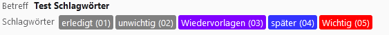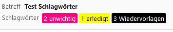 um auszuschließen, dass das Problem nur bei mir besteht, wie werden die Schlagwörter bei Euch in der jeweiligen Mail sortiert/eingetragen?